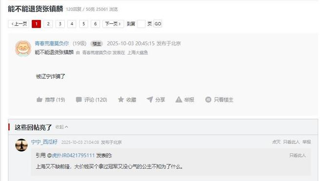 现在上海球迷急了,认为引进张镇麟亏了,也不必要引进他,因为上海队锋线能得分的球员有李弘权,还有李添荣等人,上海不缺前锋,大价钱买个拿过冠军又没心气的公子不知为了什么。他精神属性极差,技术粗糙,作用不大。有的上海球迷生气地说,“能不能退货张镇麟?我们被辽宁诈骗了”。其实人家辽宁并非诈骗,而是上海队管理层不识货罢了。你们说呢?