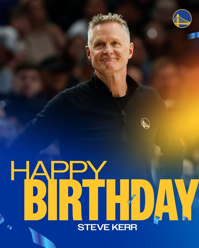 北京时间9月28日,勇士主帅史蒂夫-科尔迎来60岁的生日,勇士官方晒出海报,并配文写道:“勇士国度,和我们一起祝愿科尔教练生日快乐。”