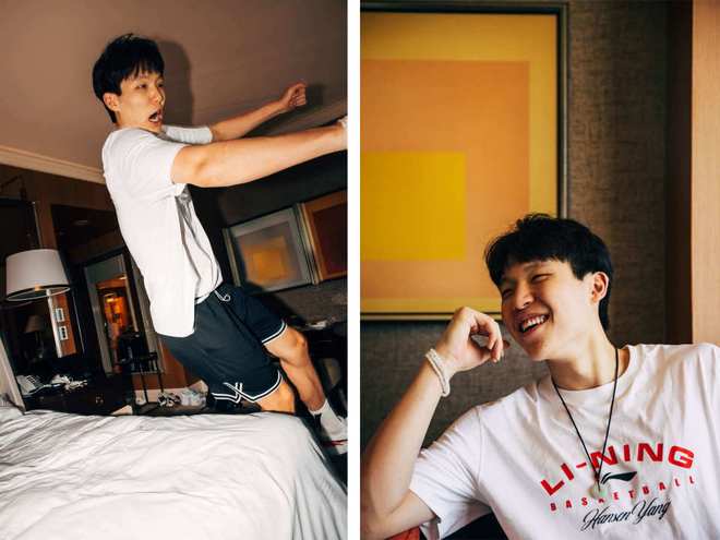 也是那个时候我记得我在打一个国际青年赛,当时外国的评论员不太会说我的名字,然后他们发现我的姓的发音和“Young”其实是一样的,所以他们开始叫我“HandsomeYoung”,从此这个名字就开始成为了我自己的一个标志,也成为了那件T恤的开始。其实那个时候我也觉得自己不是那么受关注,也没有觉得自己能够和同龄球员相比有多么的突出。但是慢慢的,在一系列的国际比赛中,我开始有了一些不知从何而来的自信。之后两年的CBA,我觉得自己的技术和能力都有了一个很大很大的提高。