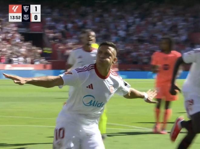 此役主场对阵巴塞罗那,首发出战的桑切斯在比赛第13分钟主罚点球破门,帮助塞维利亚取得1-0领先。