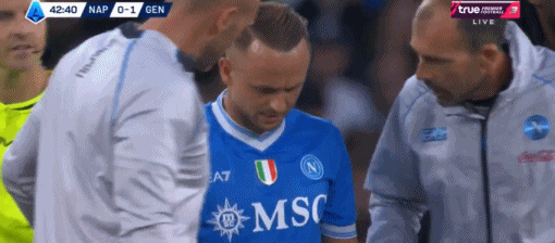 第43分钟,那不勒斯换人,洛博特卡伤退,吉尔摩登场