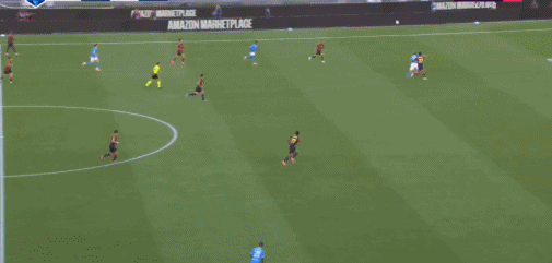 第33分钟,库菲人球分过后传中,埃哈托尔脚后跟巧射破门,热那亚1-0那不勒斯