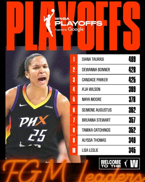 托马斯季后赛进球数超越丽莎-莱斯利,升至WNBA季后赛历史第9位。