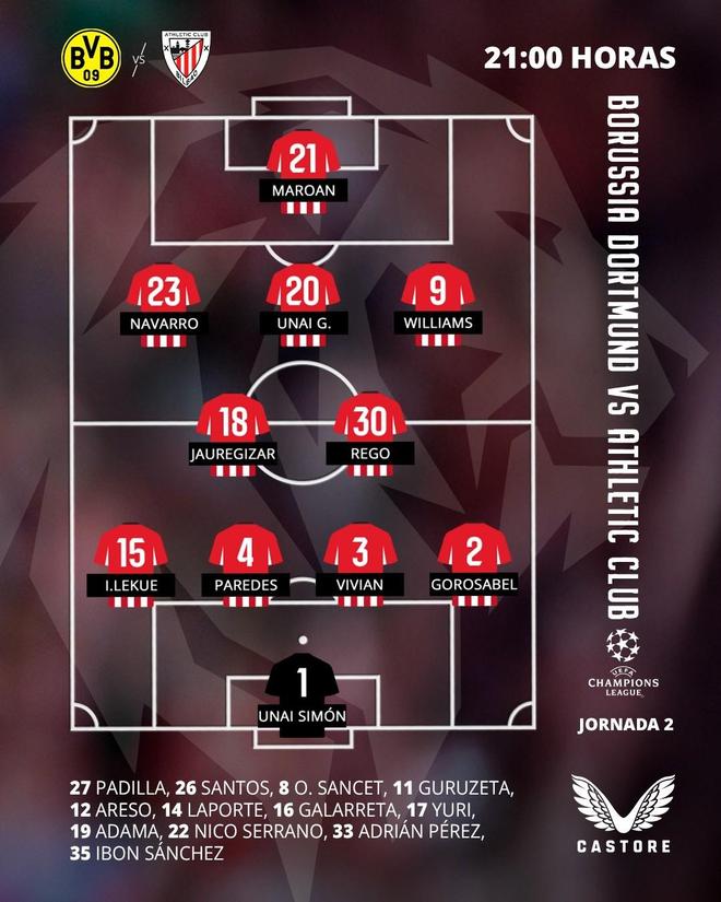 多特vs毕尔巴鄂竞技:吉拉西、阿德耶米首发,乔布出战