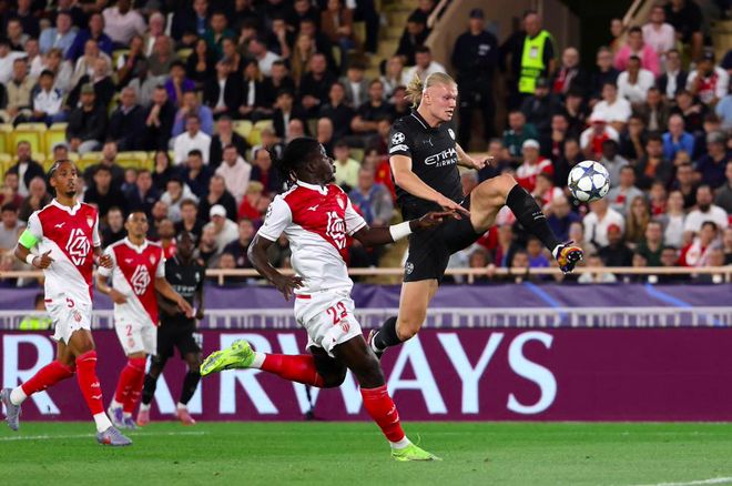 第44分钟,曼城在摩纳哥的30米区域连续传递,奥莱利传中,哈兰德高高跃起,头槌破门。